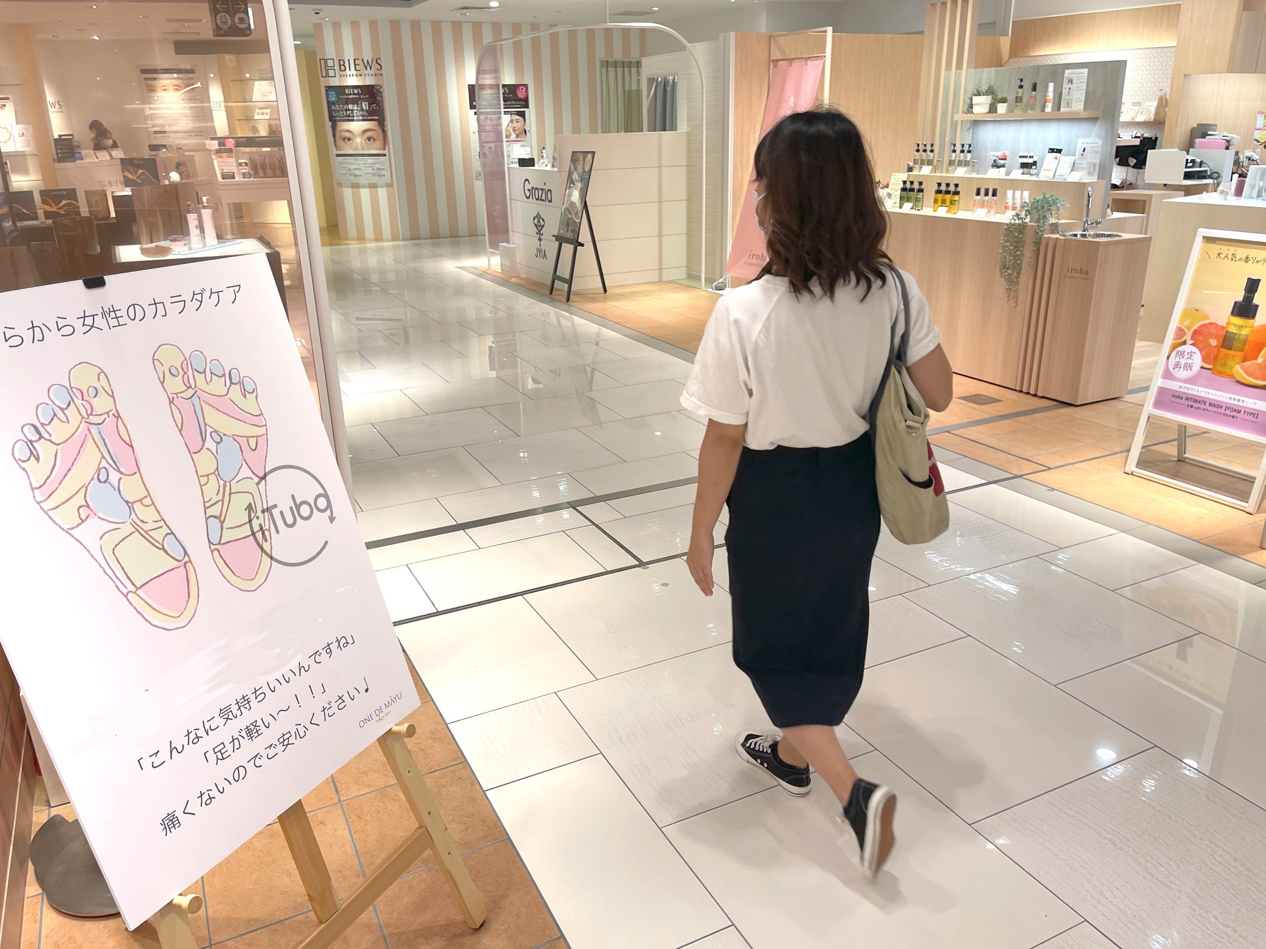 フェムケアサロン・ワンドマユ大丸梅田店では、初めて足つぼを受けられるお客さまもいらっしゃいます。