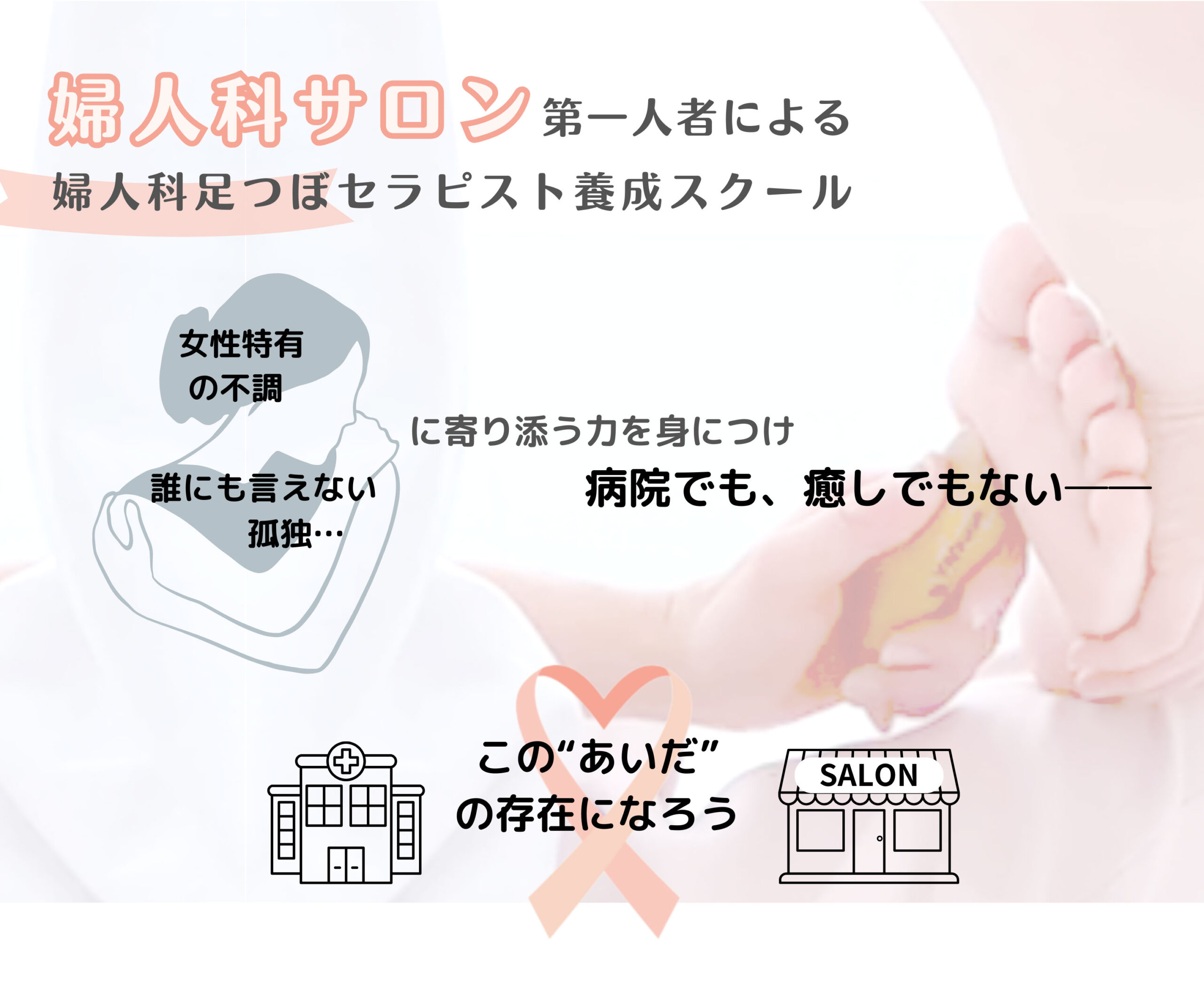 婦人科に特化した足つぼ+体質改善×生活習慣指導で、再発しない根本改善セラピストを育てるスクールです。