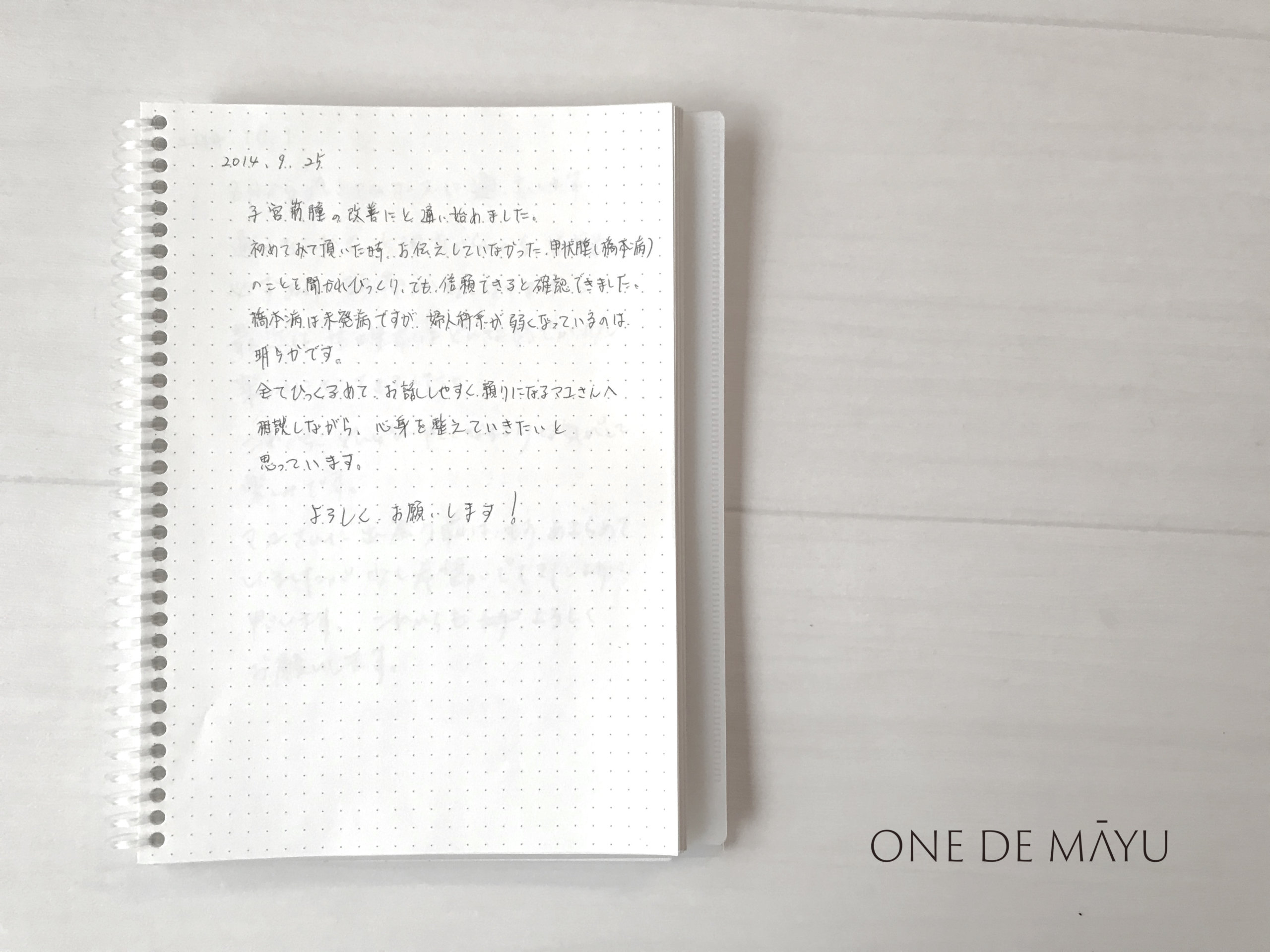 子宮筋腫が大きくなって子宮全摘の予定だったんですが、何かやれることはないかと調べてみたところまゆさんのブログに辿り着き、きっとこれは本当のことだと感じ、生活習慣の改善を初めてみました。