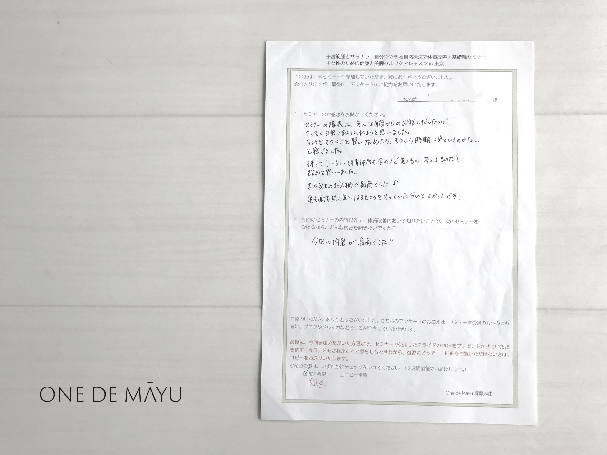 まゆ先生に直接、東京で教えていただけて、本当によかったです。